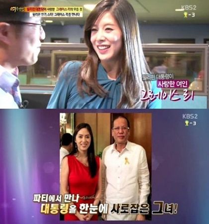 이날 방송에서 필리핀 대통령 전 연인 그레이스 리는 싱가포르로 도주한 사연을 공개해 눈길을 끌었다.