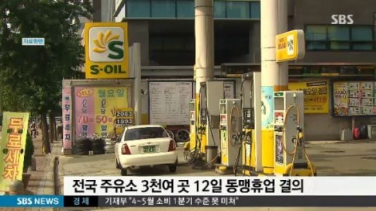 [SBS연예뉴스 연예뉴스팀] 주유소 파업 예고 '전국 주유소 3천여 곳 12일 동맹휴업'