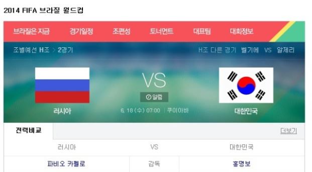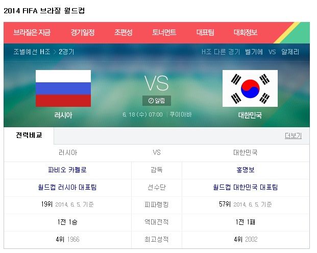 이를 접한 네티즌들은 “한국과 러시아, 우리나라 선수들 최선을 다하길”, “한국과 러시아, 선수들 고온에서 건강 조심히 잘 싸워주길" 등의 반응을 보였다.