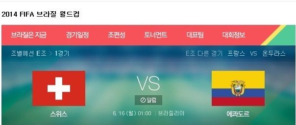 스위스와 에콰도르는 16일(한국시간) 오전 1시 브라질리아 에스타시오 나시오날 데 브라질리아에서 2014 브라질 월드컵 조별리그 E조 1차전을 갖는다고 밝혔다.