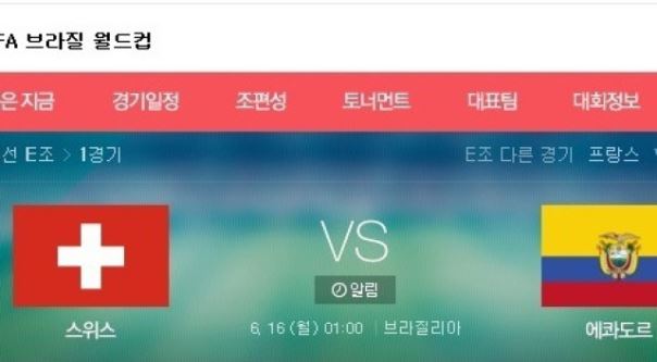 스위스 에콰도르,16일 E조 1차전