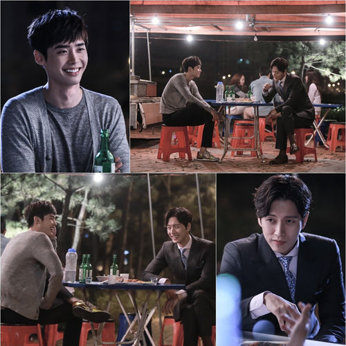 공개된 사진 속 이종석과 박해진은 포장마차에 앉아 술을 마시며 이야기를 나누고 있다. 두 사람은 우월한 기럭지와 훤칠한 외모를 과시한 모습. 이종석은 가디건과 운동화로, 박해진은 정장과 구두로 너무도 다른 스타일임에도 불구하고, 묘하게 어울린다. 특히 눈길을 끄는 것은 이종석과 박해진의 평소보다 밝은 웃음이다.