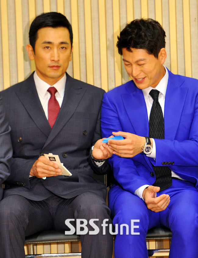 [SBS연예뉴스 | 김현철 기자] 배우 차인표-류수영이 16일 오후 서울 목동 SBS에서 열린 '끝없는 사랑' 제작발표회에서 기름종이를 받고 있다.