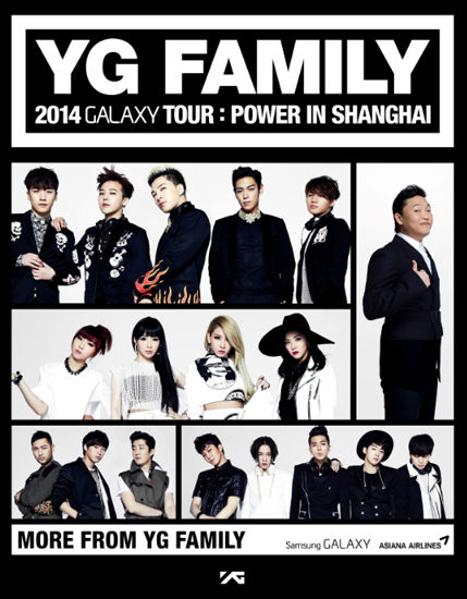 YG엔터테인먼트(이하 YG)는 삼성전자와 손잡고 8월 30일 중국 상하이에서 'YG FAMILY 2014 GALAXY TOUR : POWER IN SHANGHAI'를 개최한다. 삼성전자는 상하이를 시작으로 중국 및 동남아 지역에서 개최되는 YG패밀리 콘서트를 협찬할 계획이며 미얀마, 베트남 등에서 2NE1과의 특별한 이벤트도 계획 중이다.