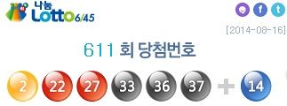 16일 나눔로또에 따르면 로또 611회 1등 당첨번호는 '2, 22, 27, 33, 36, 37'로 결정됐다. 2등 보너스번호는 '14'다.