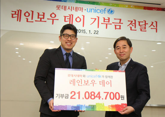 [SBS연예뉴스 | 김지혜 기자] 롯데시네마가 UN 산하단체인 '유니세프'에 희망나눔 프로젝트 '레인보우 데이'를 진행해 모은 기부금을 전달했다.