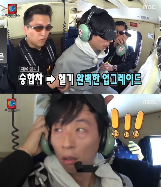 유재석은 “이거 뭐야”라며 “이건 진짜 헬기야”라고 소리치며 놀라는 표정을 감추지 못했다.