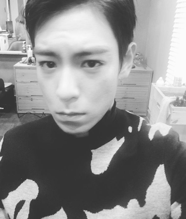 셀프 카메라를 찍고 있는 탑은 미간을 찡그리며 우울한 표정을 연출해 시선을 사로 잡았다.
