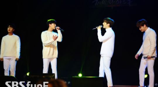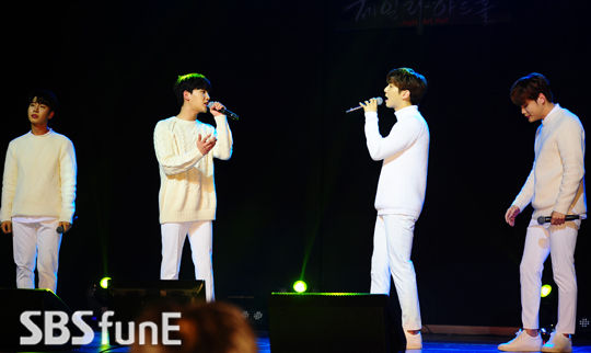 [SBSfunE 김현철기자]그룹 브로맨스가 5일 오후 서울 상암동 제일라아트홀에서 열린 두 번째 미니앨범 '로맨스(Romance)' 쇼케이스에서 무대를 펼치고 있다.