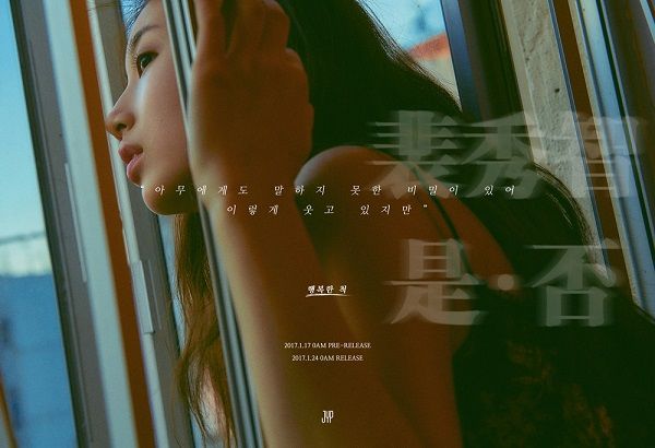 수지는 17일 '행복한 척'을 선공개하는 데 이어 24일 첫 솔로 데뷔 미니 앨범 'Yes? No?'를 발표한다. 타이틀곡은 'Yes No Maybe'로 박진영이 KAIROS와 작곡하고 직접 작사한 곡이다. 이 외에도 윤상이 소속된 1Piece, G.Soul, 어반자카파 멤버 조현아, 에피톤프로젝트 등 음악적인 역량이 매우 뛰어난 뮤지션 아티스트들이 작사, 작곡들에 참여해 수지 새 앨범에 대한 높은 기대감을 엿보게 하고 있다.