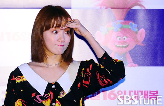 [SBSfunE 김현철기자]배우 이성경이 8일 오후 서울 왕십리CGV에서 열린 뮤지컬 애니메이션 '트롤' 시사회에 참석해 포즈를 취하고 있다.
