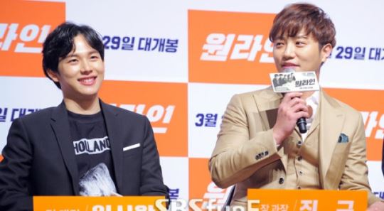 [SBSfunE 김현철기자]배우 진구가 27일 오전 서울 압구정 CGV에서 열린 영화 '원라인' 제작보고회에서 질문에 답하고 있다.