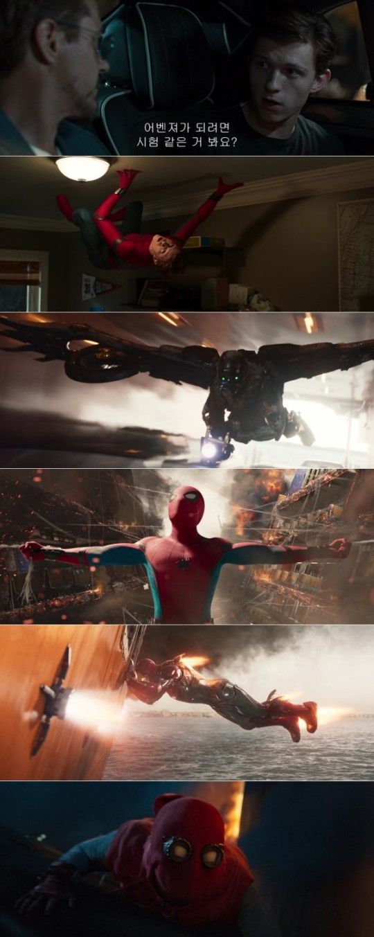 그리고 '스파이더맨'이 아직 히어로의 자질을 갖추지 못했다고 여기는 '아이언맨'의 모습이 이어져 향후 스토리에 대한 궁금증을 자극한다. 특히 이번 예고편에서는 '스파이더맨'이 하늘을 날며 '벌처'와 치열하게 맞서는 모습을 통해 한층 업그레이드된 '스파이더맨'의 능력을 예고, 기대감을 더욱 고조시키고 있다.