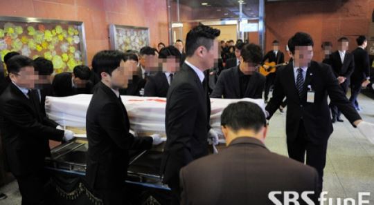 [SBSfunE 김현철기자] 11일 오전 서울 서대문구 연세대학교 세브란스병원에서 故 김영애의 발인식이 엄수됐다.