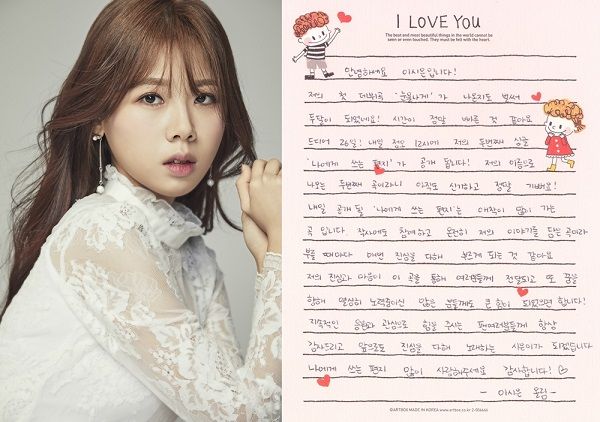 이시은은 25일 자정 팬 카페와 공식 SNS 계정에 두 번째 싱글 '나에게 쓰는 편지' 발매를 하루 앞두고 설렘과 감사의 메시지를 담은 자필 편지를 게재했다.