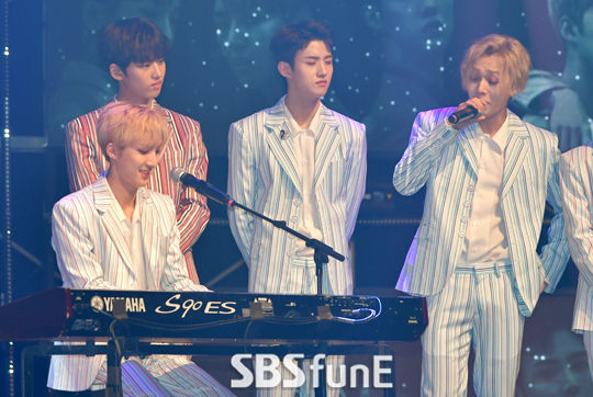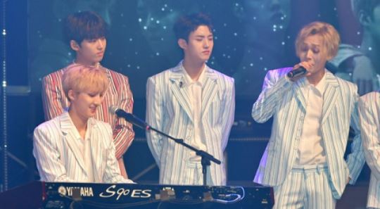 [SBSfunE연예뉴스 김현철기자] 그룹 펜타곤 후이-이던이 12일 오후 서울 합정동 신한카드 판스퀘어 라이브홀에서 열린 펜타곤 미니3집 'CEREMONY' 쇼케이스에서 멋진 무대를 보여주고 있다.