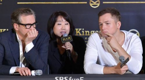 [SBSfunE 김현철기자]배우 콜린 퍼스-테런 에저튼이 21일 오전 서울 용산CGV에서 열린 영화 '킹스맨 : 골드서클' 내한 기자회견에 참석하고 있다.