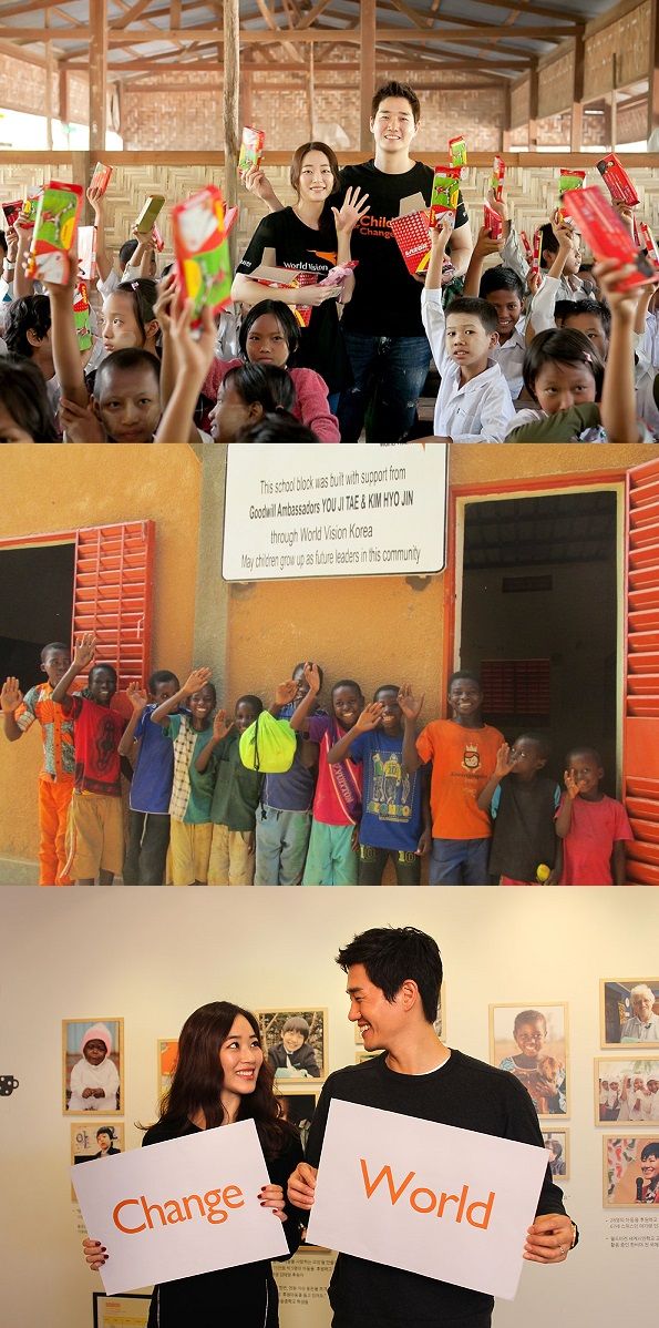 두 사람은 열악한 교육 환경으로 어려움을 겪는 아프리카 아동을 돕기 위해 지난해 월드비전과 함께 아프리카 학교 짓기 캠페인 '꿈꾸는 학교'를 진행했다. 해당 캠페인에는 유지태, 김효진 홍보대사와 함께 많은 네티즌들이 네이버 해피빈과 다양한 온라인 채널을 통해 모금에 참여했다.
