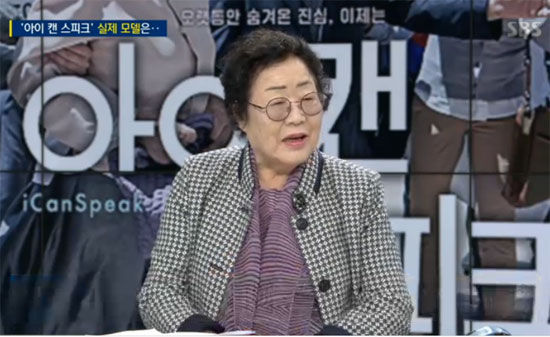 이용수 할머니는 김현석 감독과 함께 11일 오후 SBS '주영진의 뉴스 브리핑'에 출연해 영화 '아이 캔 스피크'를 본 소회와 위안부 합의 문제에 대한 자신의 목소리를 냈다.