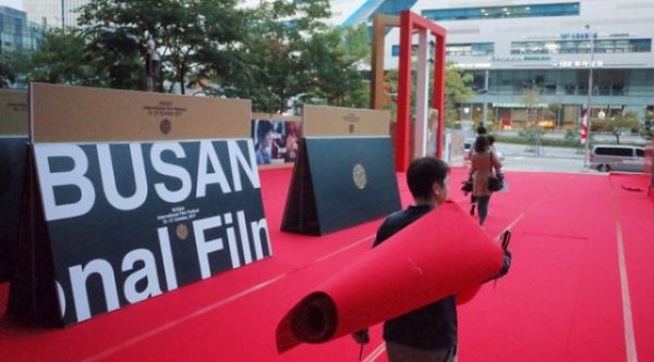 [SBSfunE 김현철기자]22회 부산국제영화제(BIFF) 개막을 하루 앞둔 11일 오후 부산 해운대구 영화의전당에서 개막 행사를 준비하고 있다.