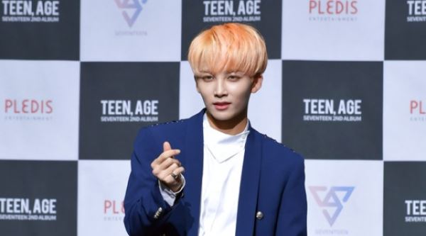 [SBSfunE 김현철기자]그룹 세븐틴 정한이 6일 오후 서울 구천면로 예스24 라이브홀에서 열린 두 번째 정규앨범 '틴, 에이지(TEEN, AGE)' 발매 기념 공연에 참석해 포즈를 취하고 있다.