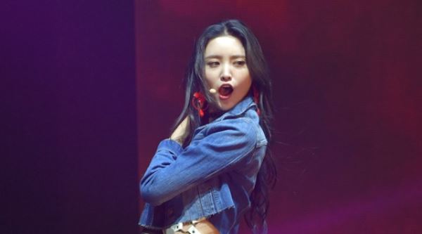 [SBSfunE 김현철기자]가수 EXID 정화가 7일 오후 서울 용산구 한남동 블루스퀘어 아이마켓홀에서 진행된 EXID 네 번째 미니앨범 'Full Moon' 발매 기념 쇼케이스에 참석해 공연을 하고 있다.