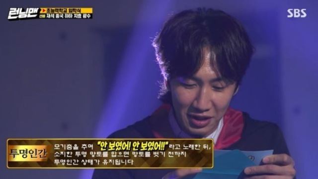 이날 방송에서 이광수는 초능력 학교 입학식을 앞두고 투명인간 초능력을 받았다.