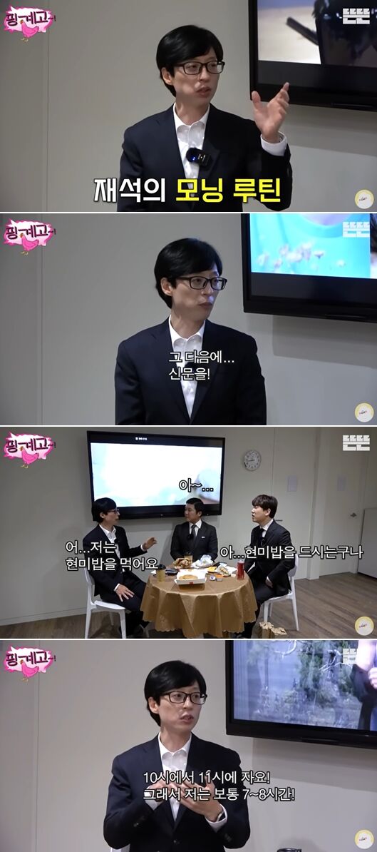 각자의 아침 일상을 이야기하던 중, 유재석은 아침에 보통 뭘 하냐는 질문에 "딱 정해졌다. 6시 아니면 7시 사이에 일어나고 뉴스를 보고 그 다음에 신문을 본다. 신문을 2개를 보는데 요즘은 바빠서 하나 밖에 못 본다"라고 말했다.