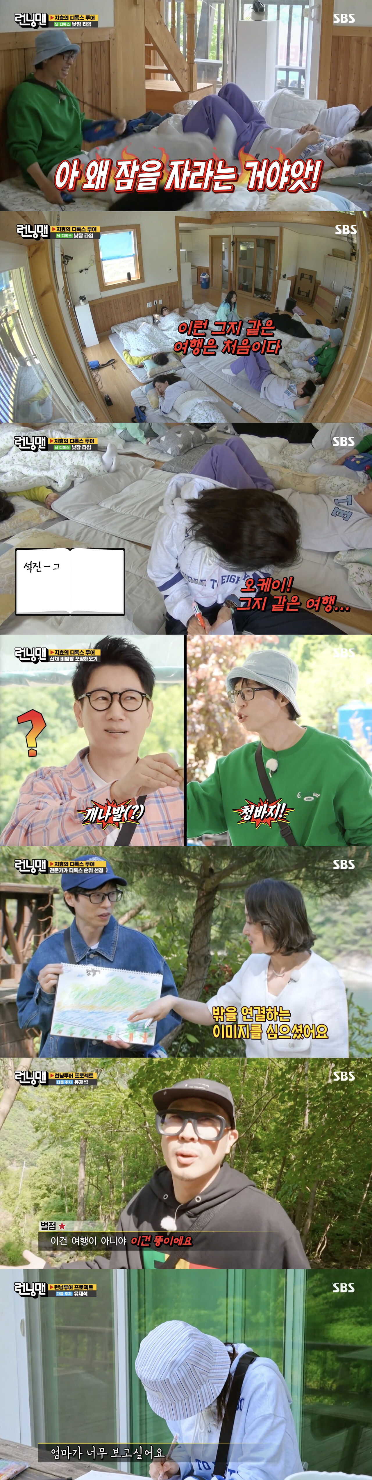 멤버들은 첫 번째 스케줄부터 불만을 드러냈다. 숙소에 도착하자마자 낮잠을 자는 일정에 유재석은 "난 이 시간에 잠을 안 자는 사람이야. 잠을 왜 자라고 하는 거야 진짜"라며 답답해했다.