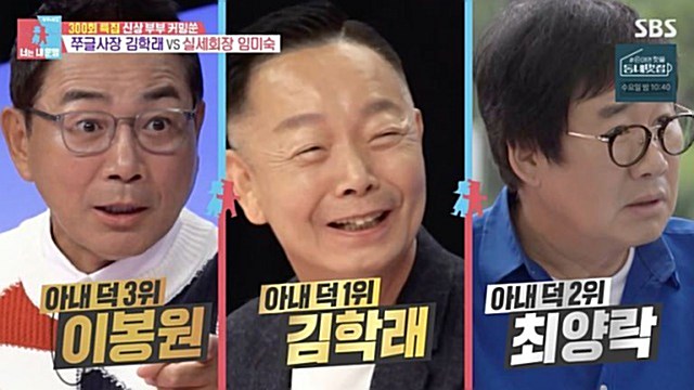 또한 MC들은 아내 덕을 많이 본 개그맨 3위에 이봉원, 2위에 최양락, 1위가 김학래라며 축하 인사를 건넸다.