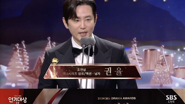 21일 서울 마포구 상암동 SBS 프리즘타워에서 밤 8시 35분부터 생방송으로 진행된 '2024 SBS 연기대상'에서는 권율과 김경남이 '미니시리즈 장르 액션' 부문 남자 조연상을 공동 수상했다.