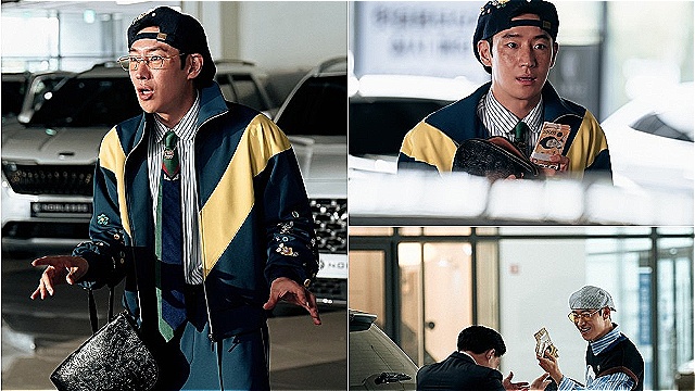 공개된 스틸 속 김도기는 부티와 촌티를 동시에 풍기는 묘한 스타일링으로 시선을 강탈한다. 특히 거꾸로 뒤집어쓴 헌팅캡이 꾸러기 도련님 같은 매력을 폭발시킨다. 무엇보다 흥미를 끄는 것은 도기의 새로운 부캐에서 느껴지는 짙은 '호구'의 향기. 순진무구하고 어리바리한 표정으로 두툼한 돈다발을 자랑(?)하는 도기의 모습이 제어할 수 없는 웃음을 자아낸다.