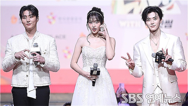 [E포토] 영케이-안유진-재민, 'SBS 가요대전의 MC로'