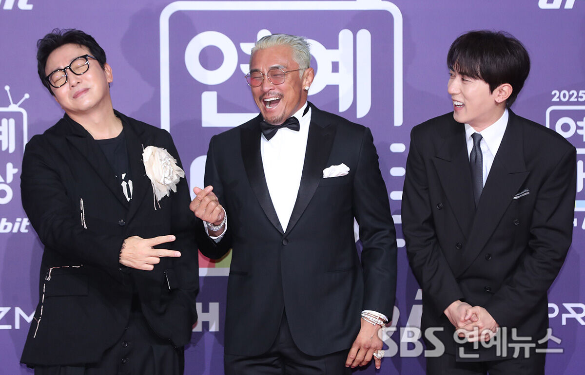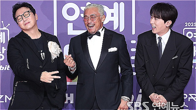 [SBS연예뉴스 | 백승철 기자] 탁재훈(왼쪽부터), 추성훈, 김원훈이 30일 오후 서울 마포구 상암동 SBS프리즘타워에서 열린 '2025 SBS 연예대상' 포토월 행사에 참석해 포즈를 취하고 있다.