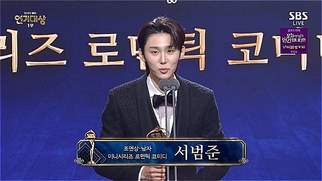 'SBS연기대상' 서범준-신슬기 '조연상' 수상···"초심 잃지 않는 배우 될 것"