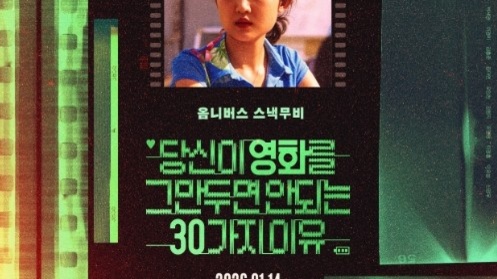 [SBS연예뉴스 | 김지혜 기자] CJ ENM과 한국예술종합학교 영상원 30주년을 기념한 합작 프로젝트이자 현재 한국 영화계에서 가장 주목받는 감독들이 총출동해 선보이는 특별한 옴니버스 스낵무비 '당신이 영화를 그만두면 안 되는 30가지 이유'가 오는 14일 개봉한다.