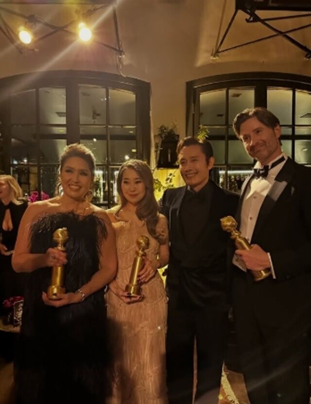 시상식 직후 이병헌은 '케이팝 데몬 헌터스'의 주역인 주역 매기 강 감독, 크리스 아펠한스 감독, 제작자 미쉘 웡 프로듀서와 함께 단체사진을 찍기도 했다.