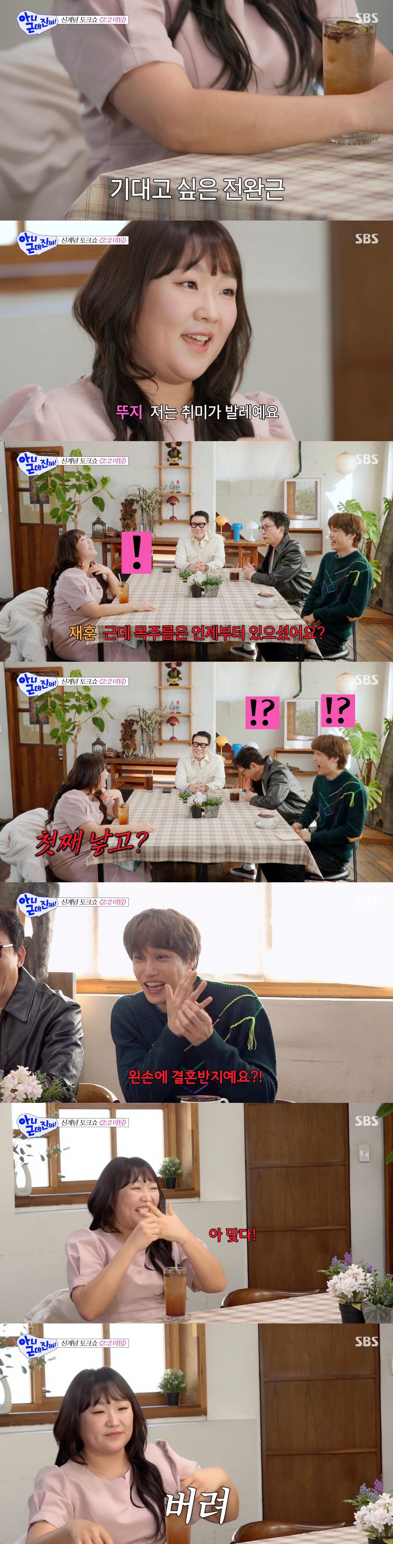 이날 뚜지는 재킷을 벗으며 남자들의 시선을 사로잡았다. 탁재훈과 카이는 "전완근"이라며 크게 놀랐고 운동을 좀 하셨냐고 물었다.