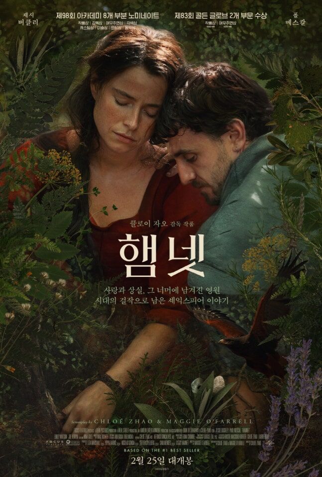 '햄릿'이 아버지를 죽이고 어머니를 취한 삼촌에 대한 단순한 복수극이 아니듯 '햄넷' 또한 아들을 잃은 부모의 진혼곡만은 아니다. 이 영화에는 사랑의 기쁨과 이별의 슬픔, 출산의 고통과 탄생의 행복, 자연의 신비와 죽음의 불가사의라는 상반된 현상과 감정이 폭넓게 공존한다. 이 모든 정서는 예술과 문학의 토양이 되는 것들이다.