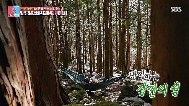 이날 방송에서 두 사람은 쓰루기산 속의 해먹에 누워 여유를 즐겼다. 특히 윤유선은 "이야 신세계다 신세계. 지금은 이 산의 주인이 나인 거 같아"라며 감상에 젖었다.
