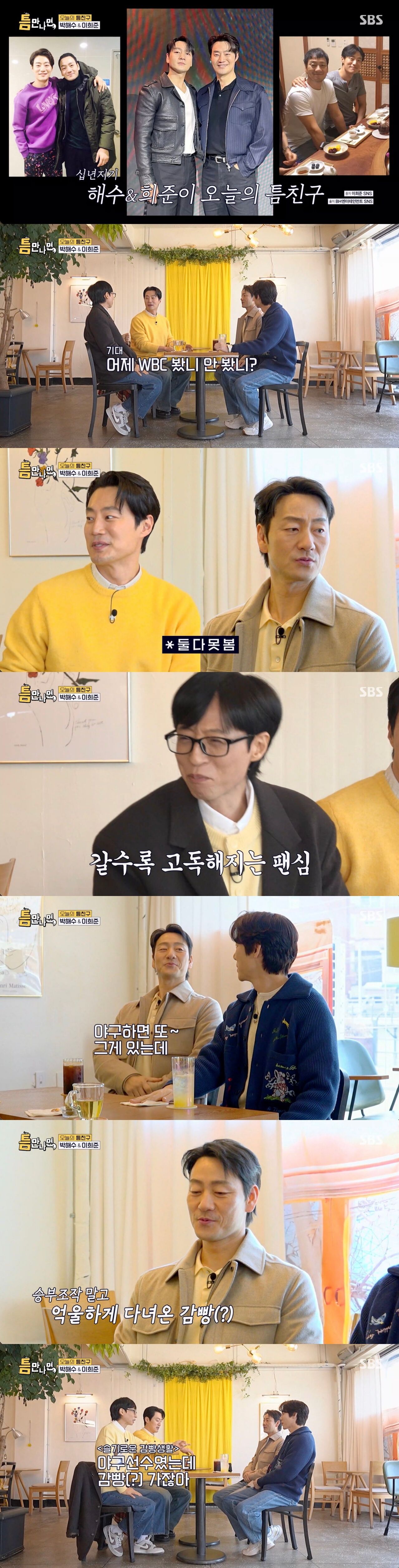 이날 방송에서는 배우 이희준, 박해수가 틈친구로 등장했다. 10년 지기 찐친인 두 사람의 등장에 각각 인연이 있는 유유형제는 반갑게 맞았다.