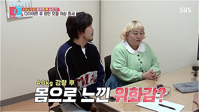 이날 방송에서 9개월간 40kg 감량에 성공한 홍윤화는 최근 이상 증세가 있다며 고민을 토로했다.