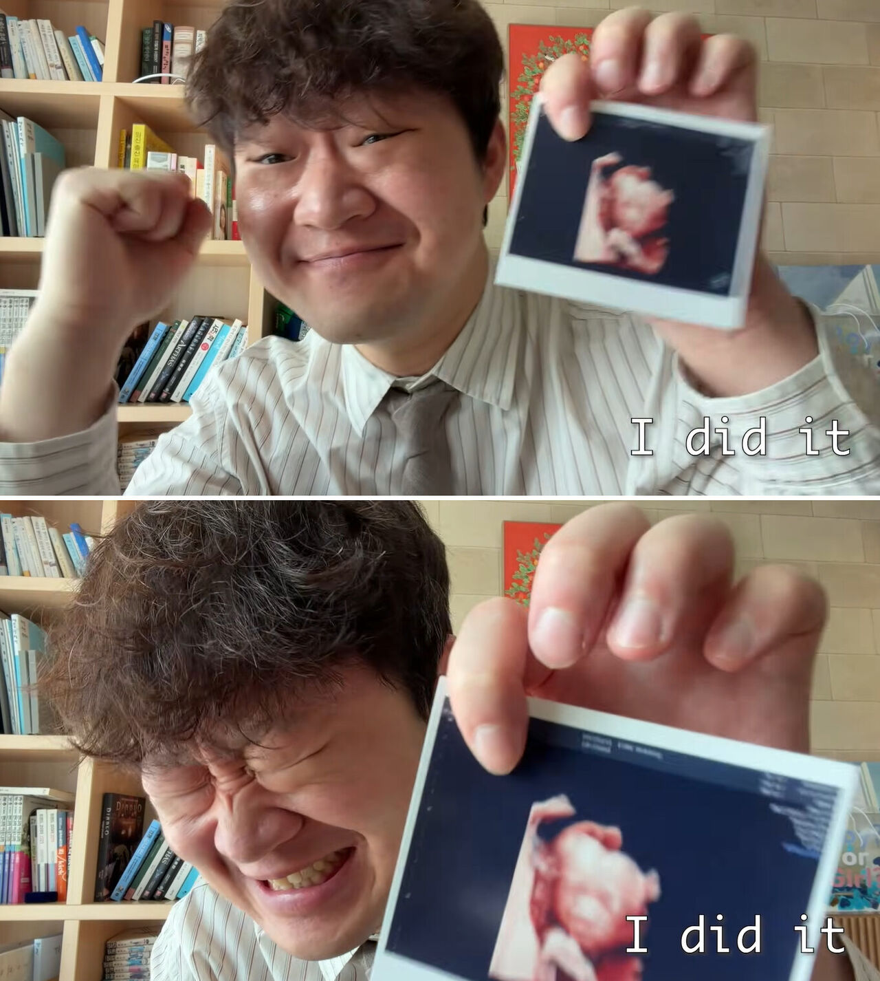 영상에서 그는 태아의 초음파 사진을 공개하면서 "너무 좋다. 하지만 너무 어렵다. 그러나 너무 행복하다"며 솔직한 심경을 밝혔다. 이어 "앞으로 어떻게 해야 될지 모르겠다. 아빠는 뭘까"라며 눈물을 글썽이며 아들을 기다리는 감동을 표현했다.