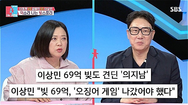 이에 김숙은 "이상민은 밝혀진 금액만 69억이다"라며 그의 채무를 언급했다. 그러자 이상민은 "사실 그건 시작 금액이다. 이후에 채권자들이 더 받아야겠다 그래서 더 늘고 그랬다"라고 했다.